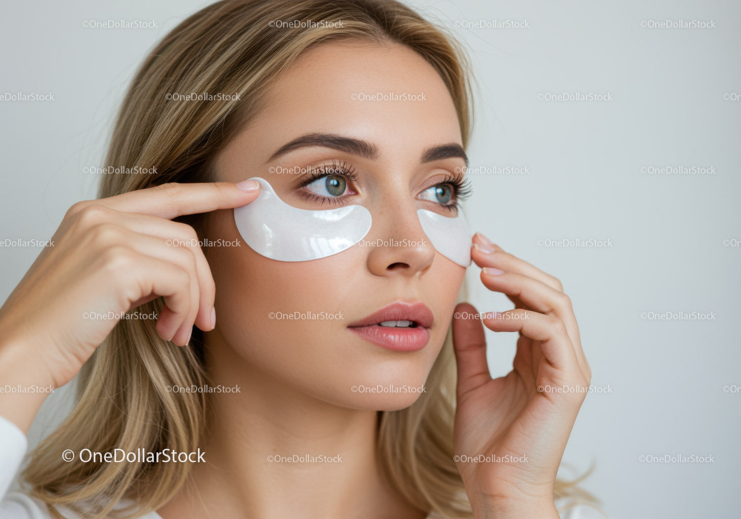 Piękna kobieta nakładająca plastry pod oczy w celu pielęgnacji skóry