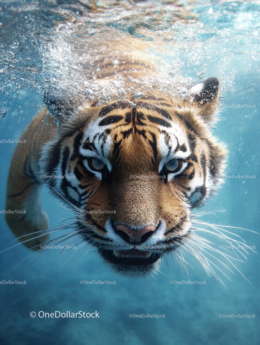 Tygrys bengalski pod wodą, pokazujący dziką majestatyczność