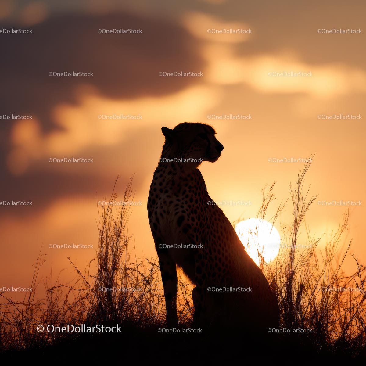 Sylwetka geparda na tle żywego afrykańskiego zachodu słońca