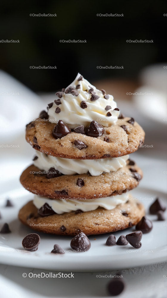 Ciasteczka z kawałkami czekolady, kremem i kawałkami czekolady