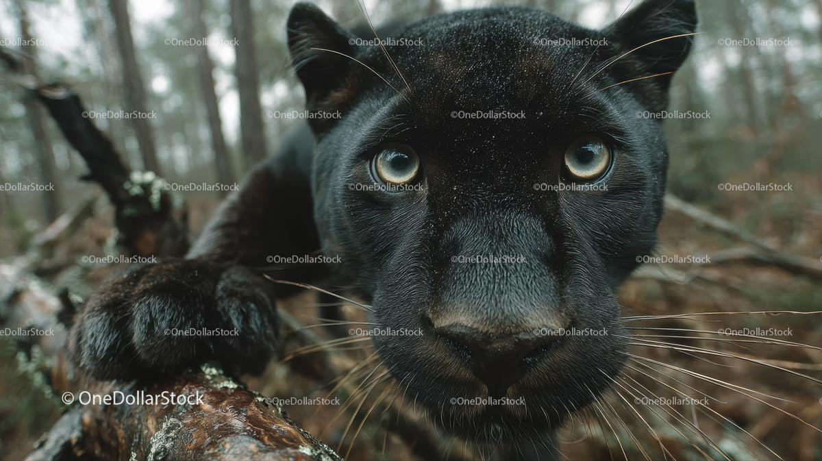 Zbliżenie czarnej pantery wspinającej się na drzewo