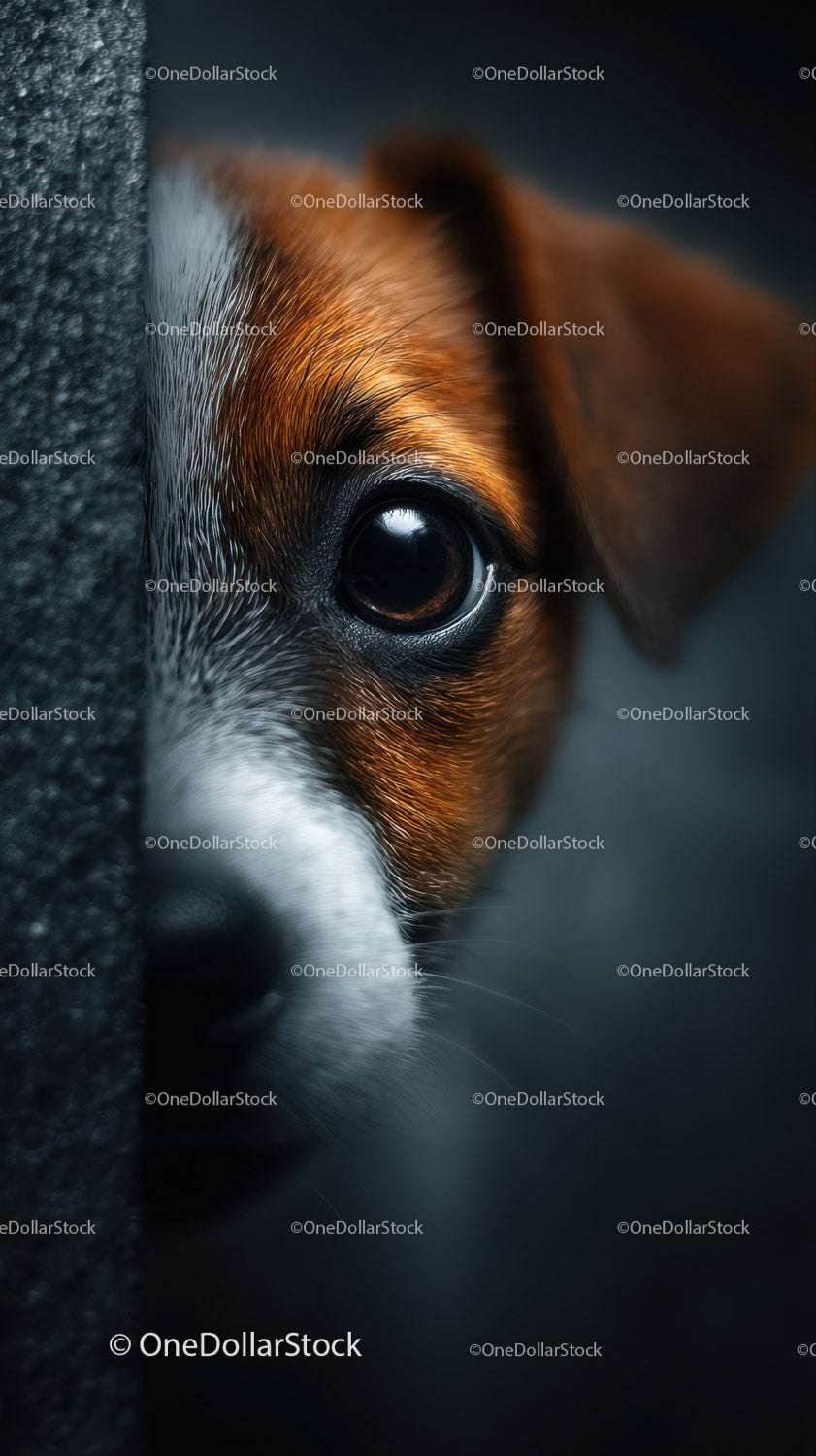 Zbliżenie na brązowo-biały pysk szczeniaka z głębokim kontaktem wzrokowym