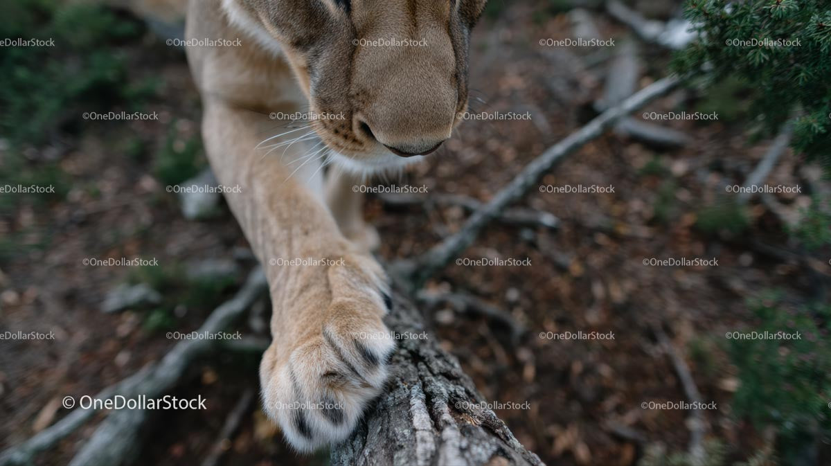 Zbliżenie na pumę wspinającą się na drzewo w lesie