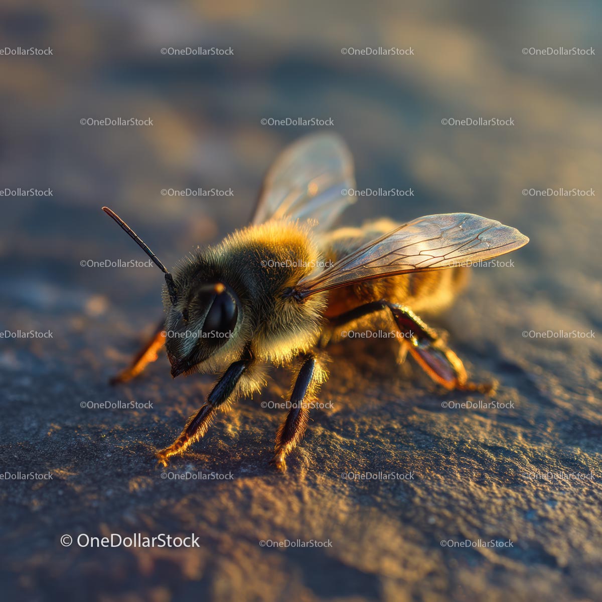 Nie możesz dodać więcej Zbliżenie pszczoły miodnej w złotym świetle słonecznym w Użytek osobisty do koszyka