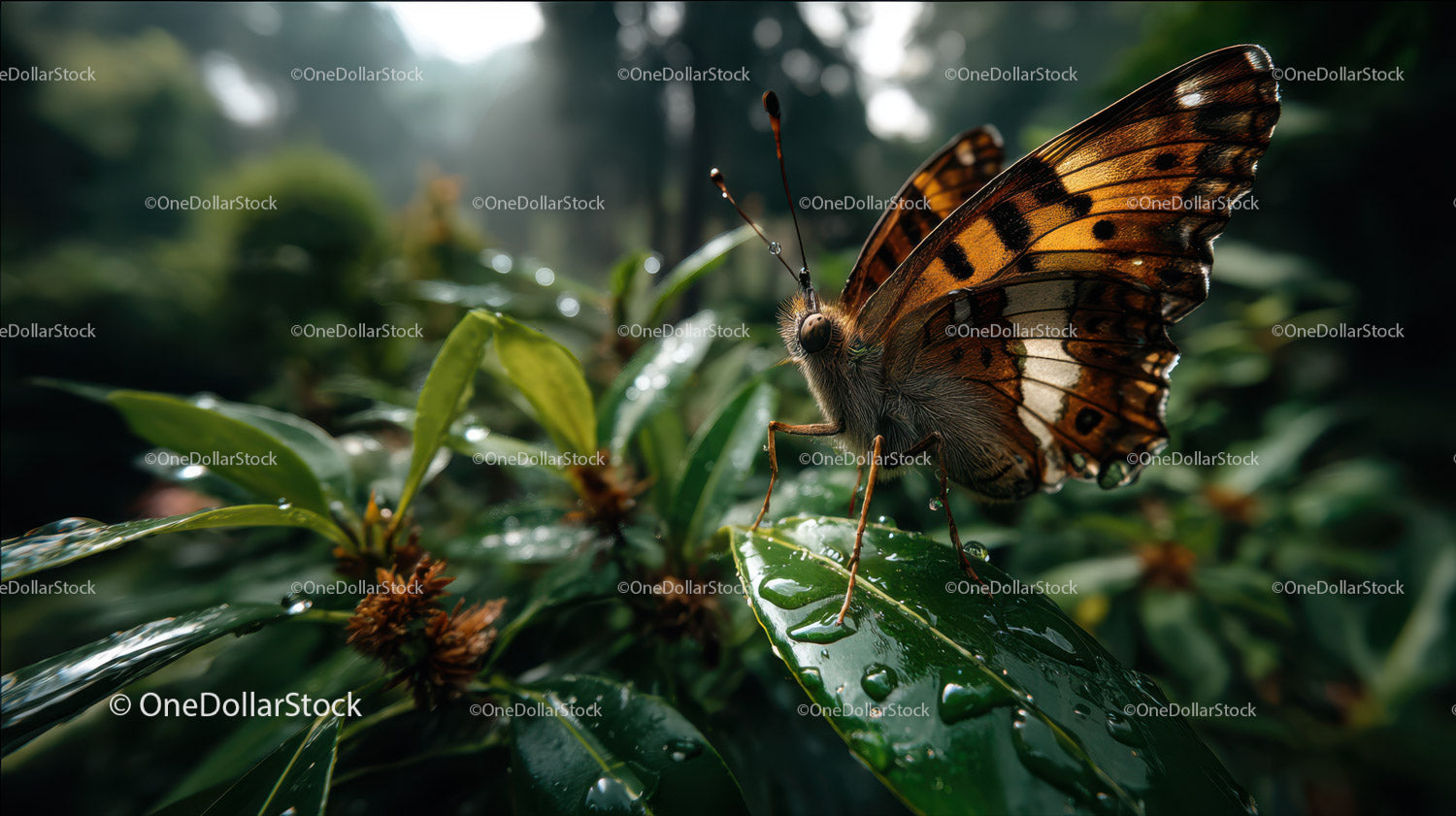 Zbliżenie motyla monarcha na zielonym liściu w scenerii natury
