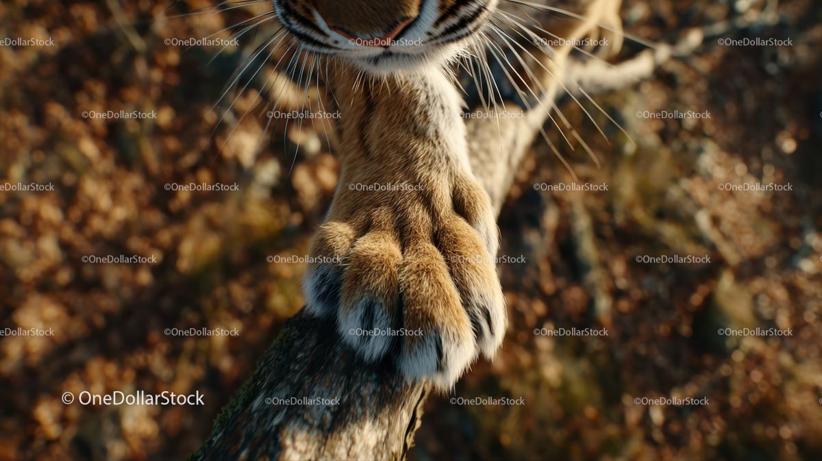 Zbliżenie na łapę tygrysa chwytającą gałąź drzewa