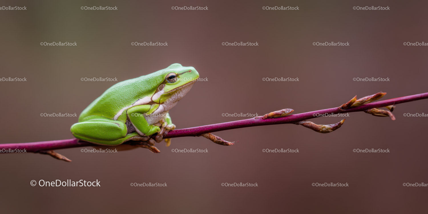 Zbliżenie na jaskrawozieloną rzekotkę drzewną siedzącą na gałęzi