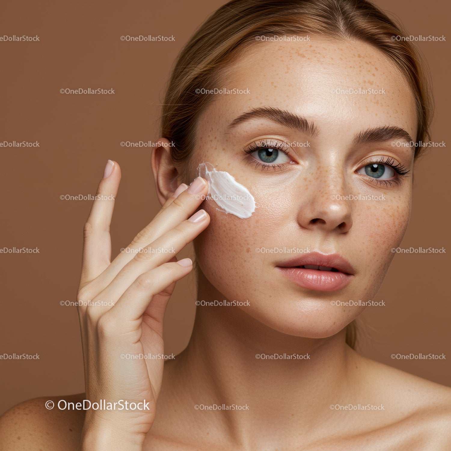 Zbliżenie kobiety nakładającej krem nawilżający na jasną skórę z piegami