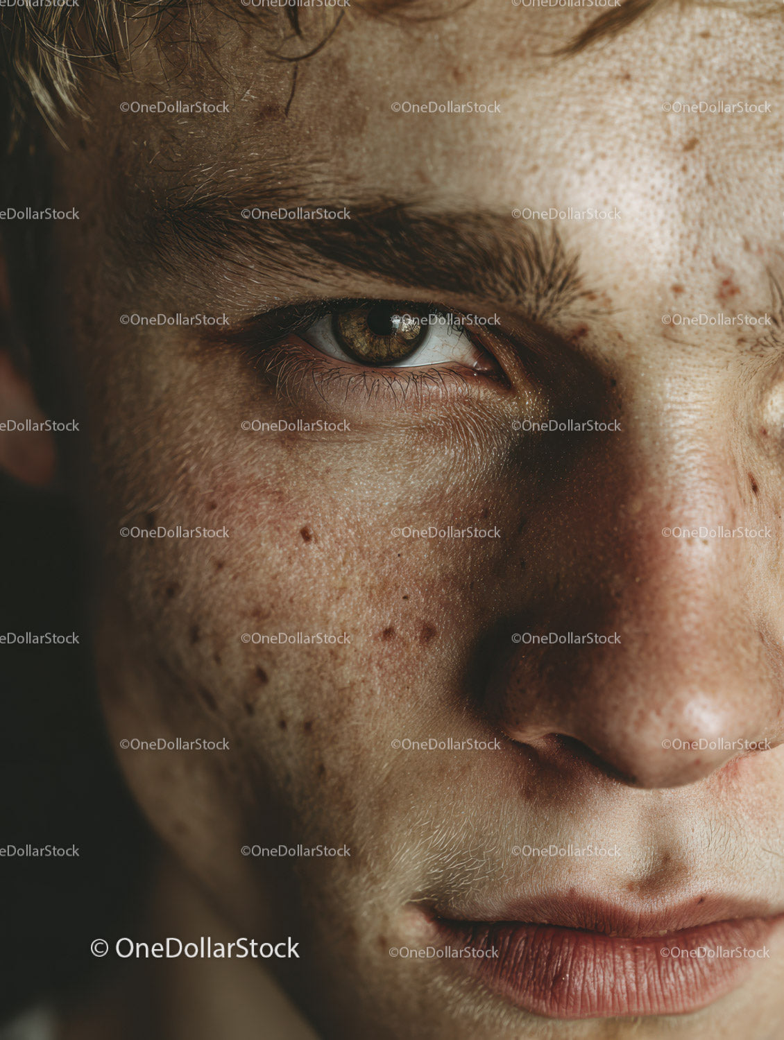Zbliżenie twarzy młodej kobiety z zielonymi oczami i piegami