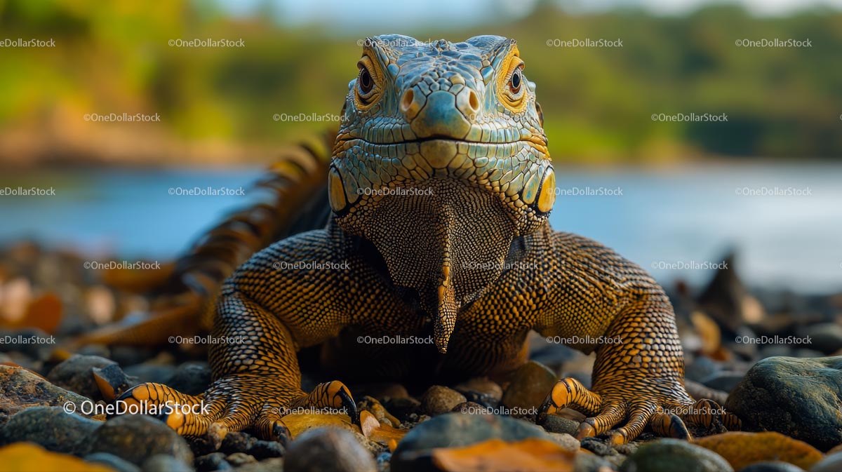 Zbliżenie na legwana w tropikalnym otoczeniu