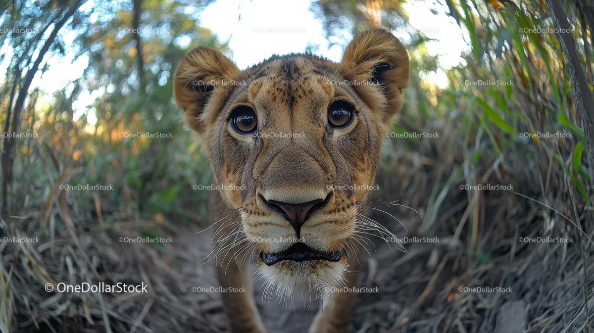 Zbliżenie na ciekawskiego lwiątka w naturalnym środowisku