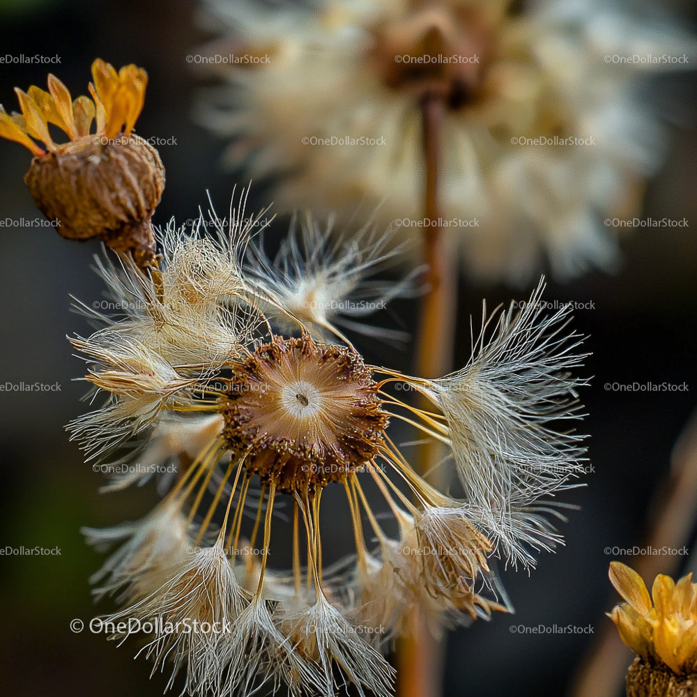 Zbliżenie suszonych kwiatów i główek nasion jesienią