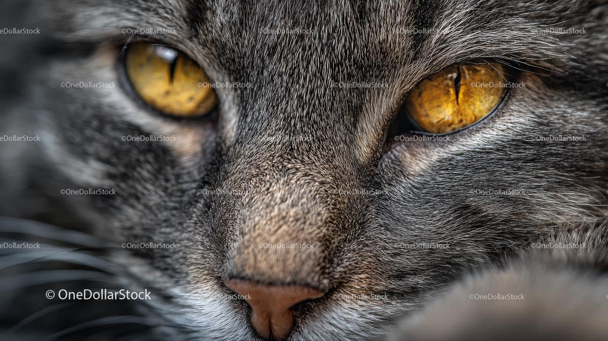 Zbliżenie na pręgowanego kota o intensywnie żółtych oczach