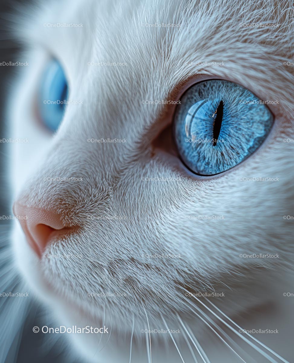 Zbliżenie białego kota z uderzającymi niebieskimi oczami