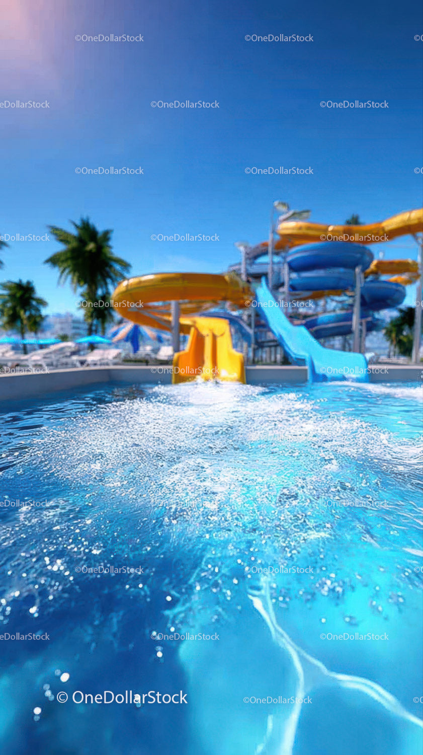 Kolorowe zjeżdżalnie wodne w parku wodnym na świeżym powietrzu w słoneczny dzień