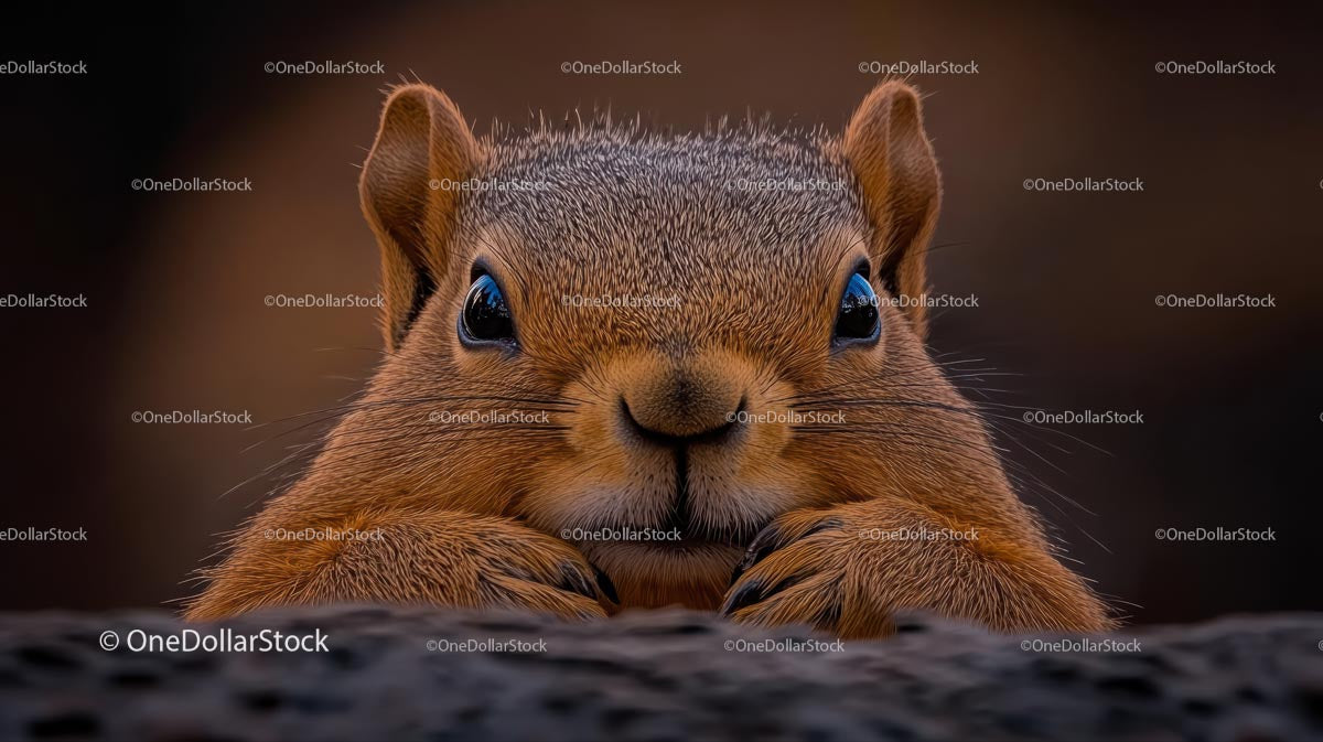 Ciekawa wiewiórka zaglądająca zza krawędzi skały