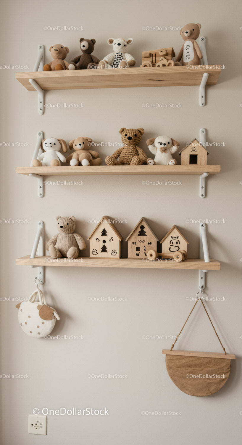 Śliczne pluszowe misie i drewniana dekoracja domu w pokoju dziecięcym