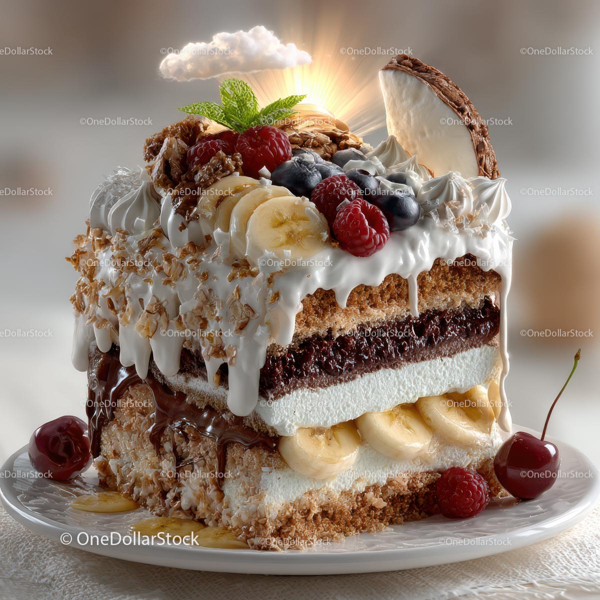 Dekadenckie ciasto warstwowe ze świeżymi jagodami i bitą śmietaną