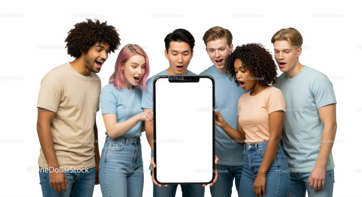 Różnorodna grupa podekscytowana innowacją w zakresie smartfonów