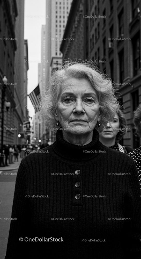 Starsza kobieta w czarnym stroju na ruchliwej ulicy miasta
