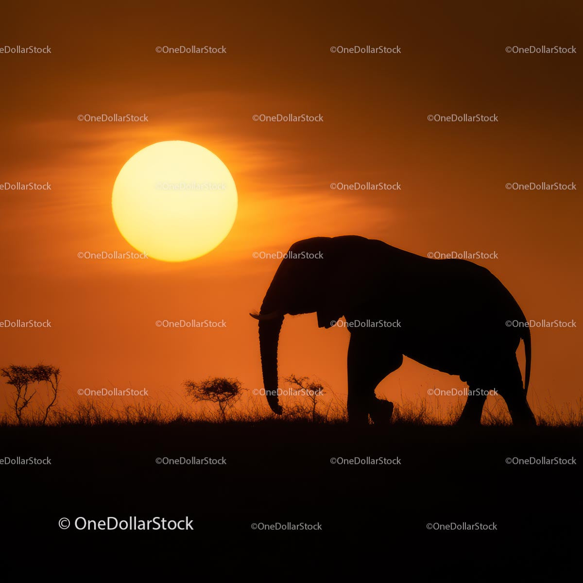 Nie możesz dodać więcej Sylwetka słonia o zachodzie słońca na afrykańskiej sawannie w Użytek osobisty do koszyka