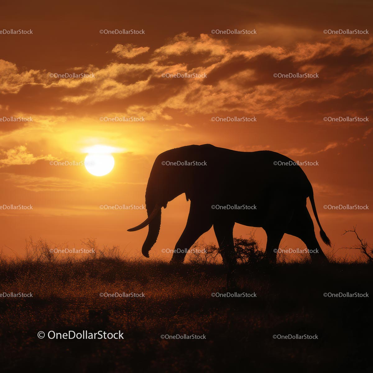 Nie możesz dodać więcej Sylwetka słonia o zachodzie słońca na afrykańskiej sawannie w Użytek osobisty do koszyka
