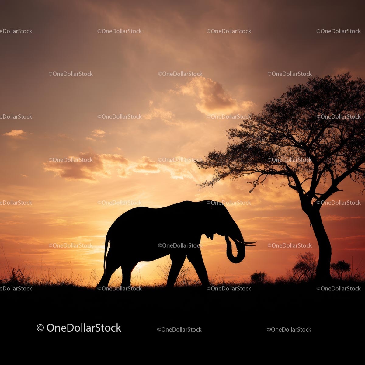 Sylwetka słonia o zachodzie słońca na afrykańskiej sawannie