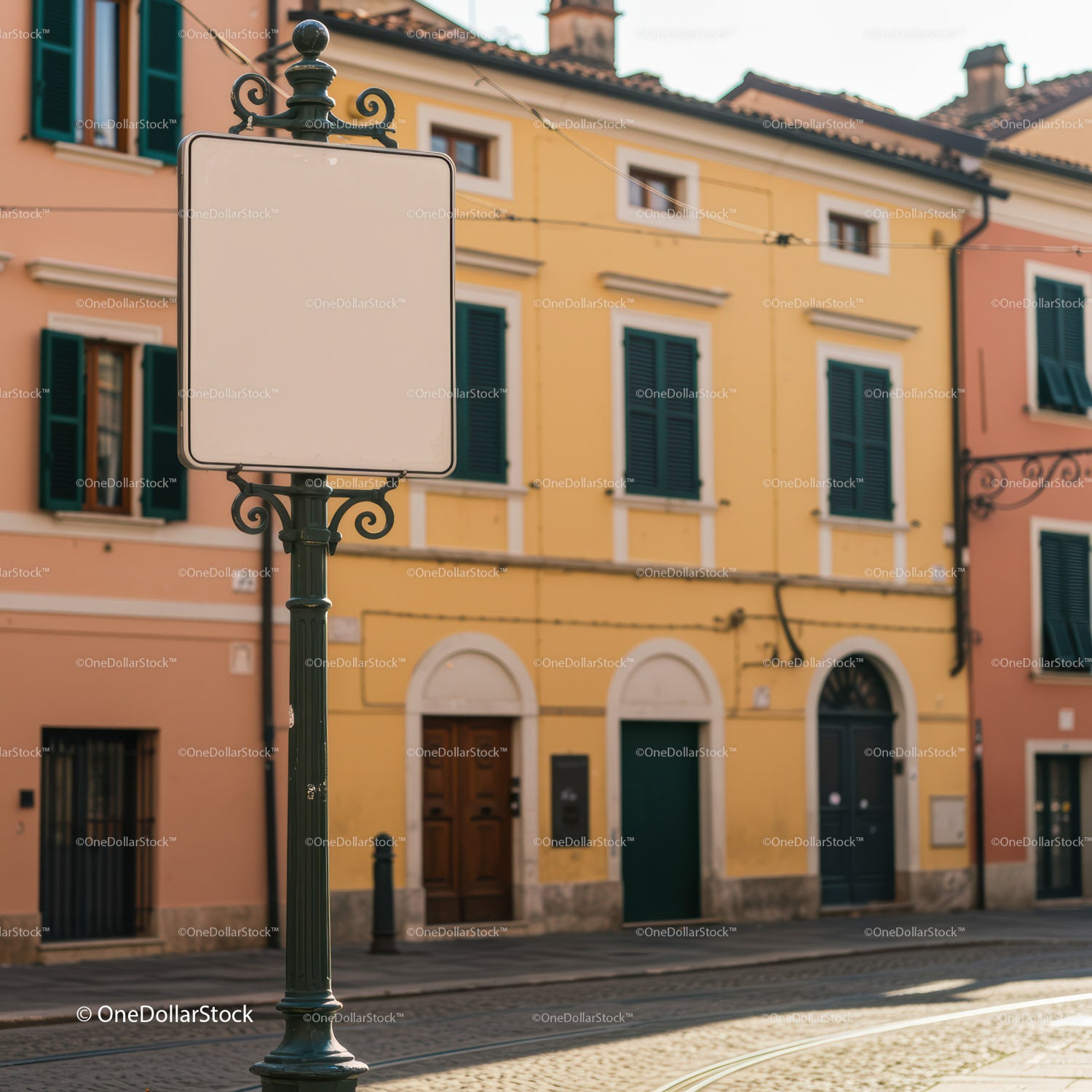 Pusty, zabytkowy znak uliczny wśród pastelowych budynków miasta