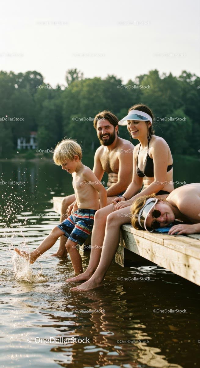 Rodzina cieszy się relaksującym dniem nad jeziorem