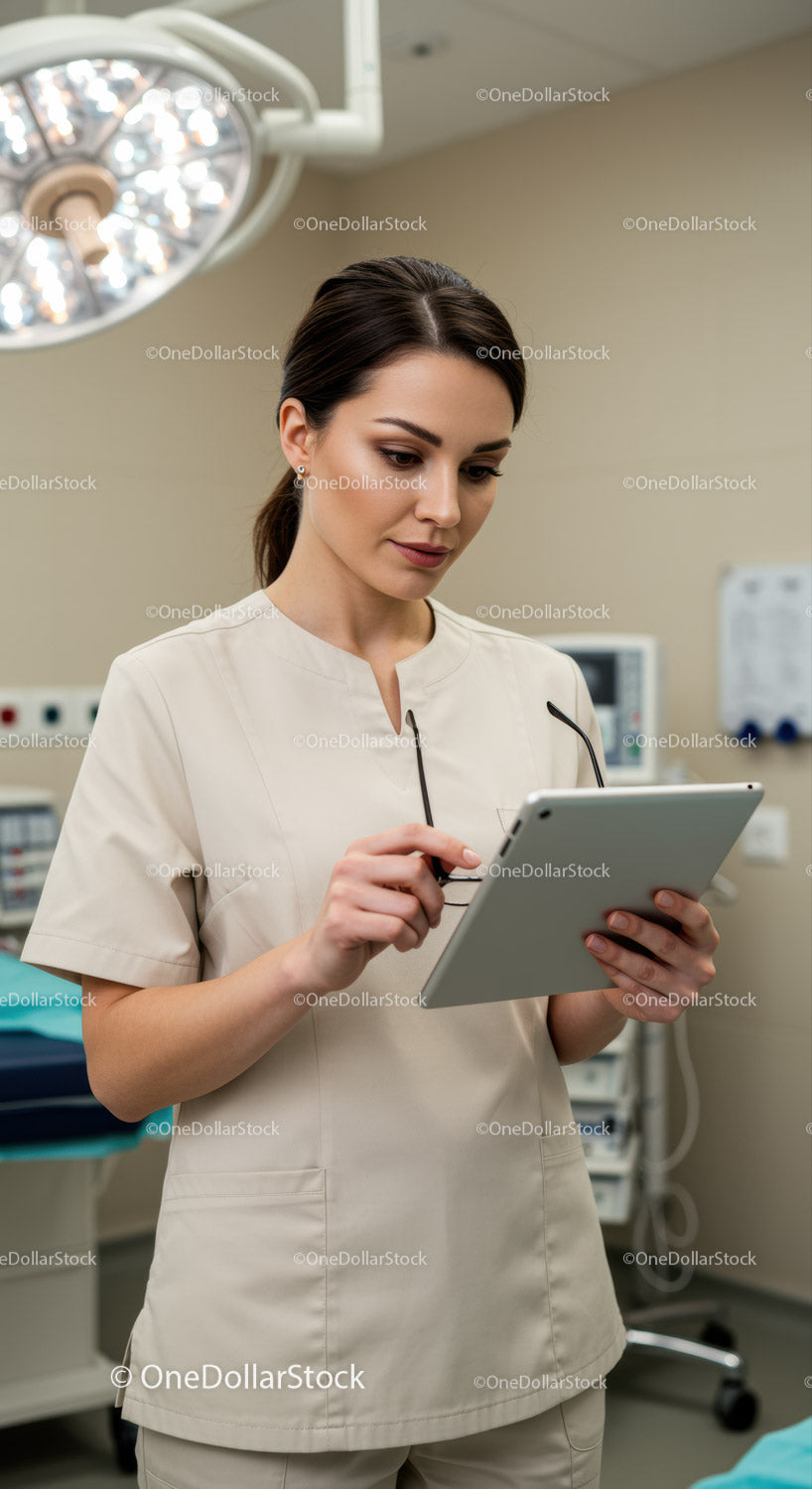 Pielęgniarka korzystająca z tabletu cyfrowego w nowoczesnej sali szpitalnej