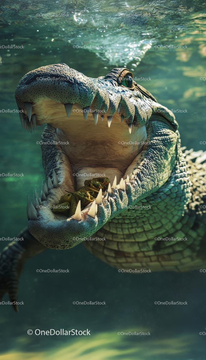 Okrutny krokodyl z otwartą paszczą pod wodą