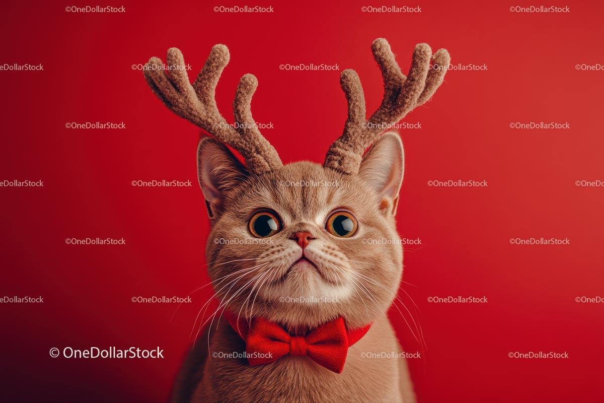 Świąteczny Kot z Porożem Renifera na Czerwonym Tle