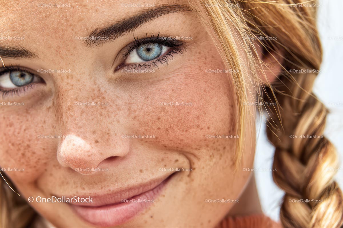 Piegowata kobieta z niebieskimi oczami i warkoczami