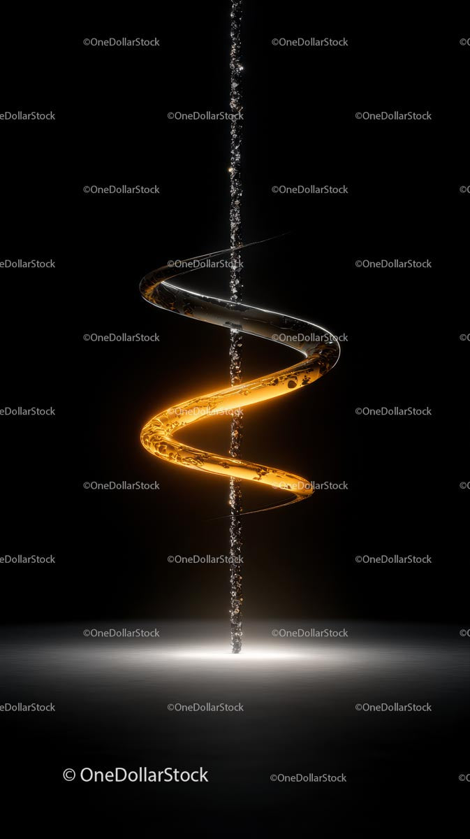 Futurystyczna złota helisa DNA z kroplami wody na ciemnym tle