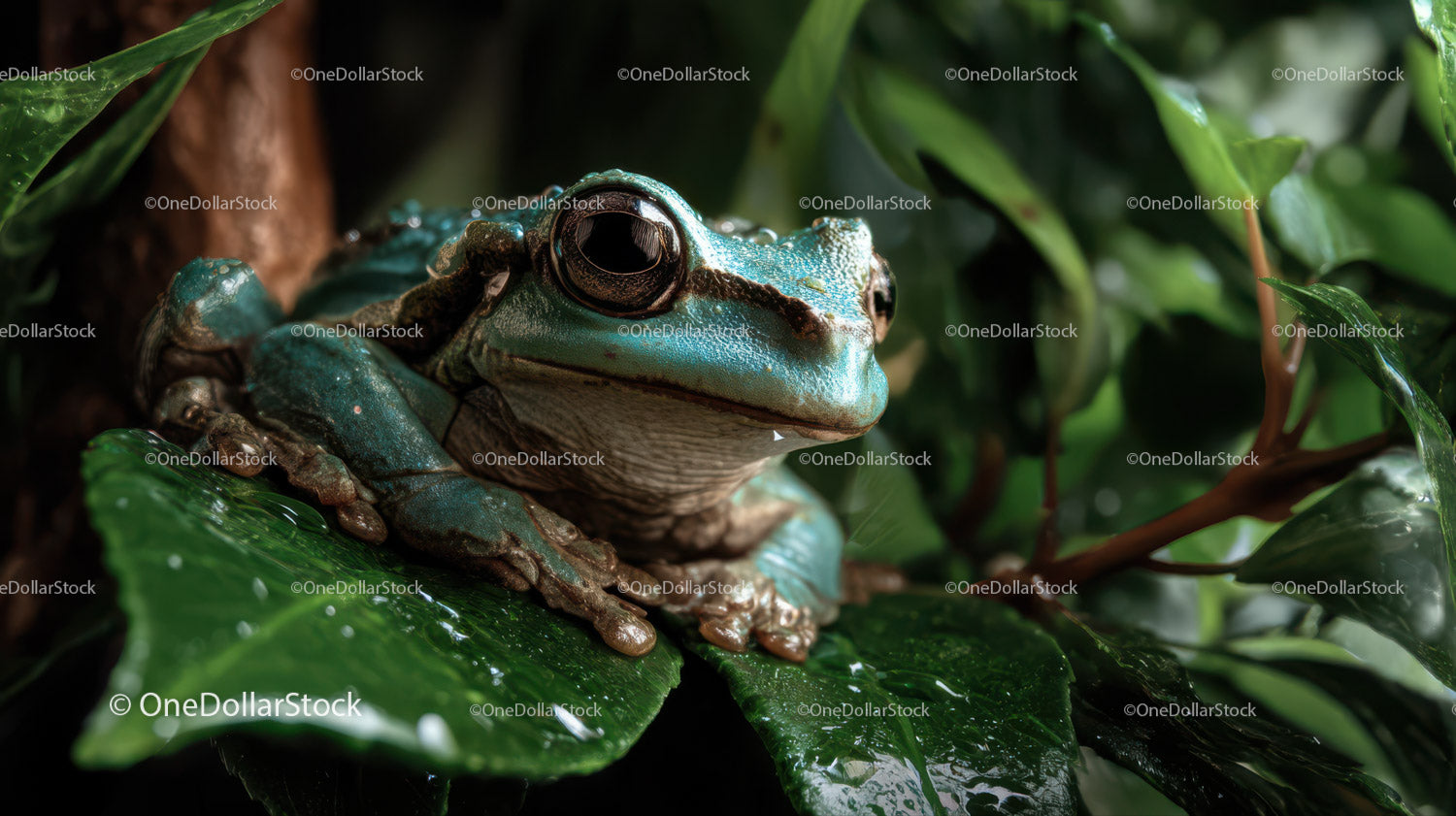 Zielona żaba odpoczywająca na liściu w środowisku dżungli