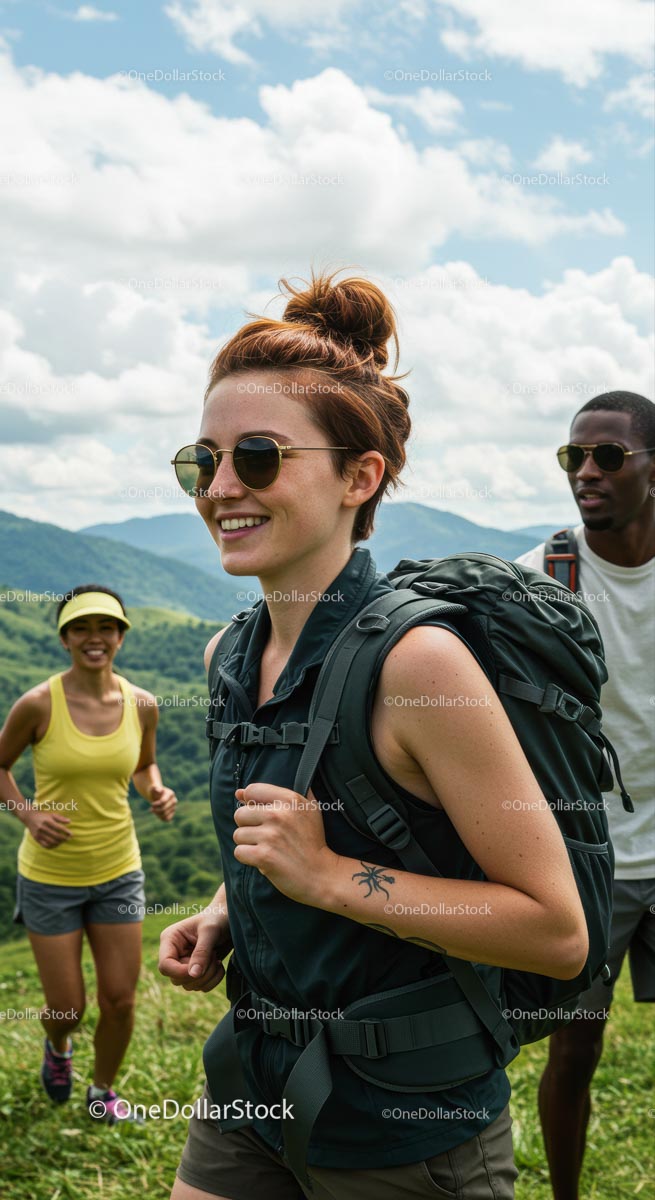 Grupa przyjaciół wędrująca po malowniczym górskim krajobrazie