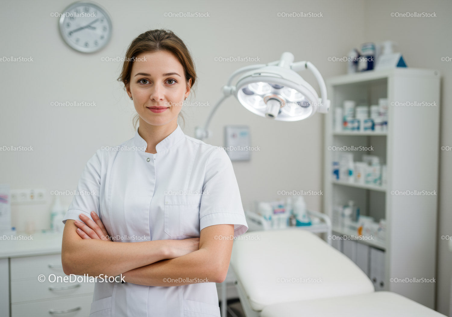 Pracownik służby zdrowia w nowoczesnym gabinecie lekarskim ze sprzętem medycznym