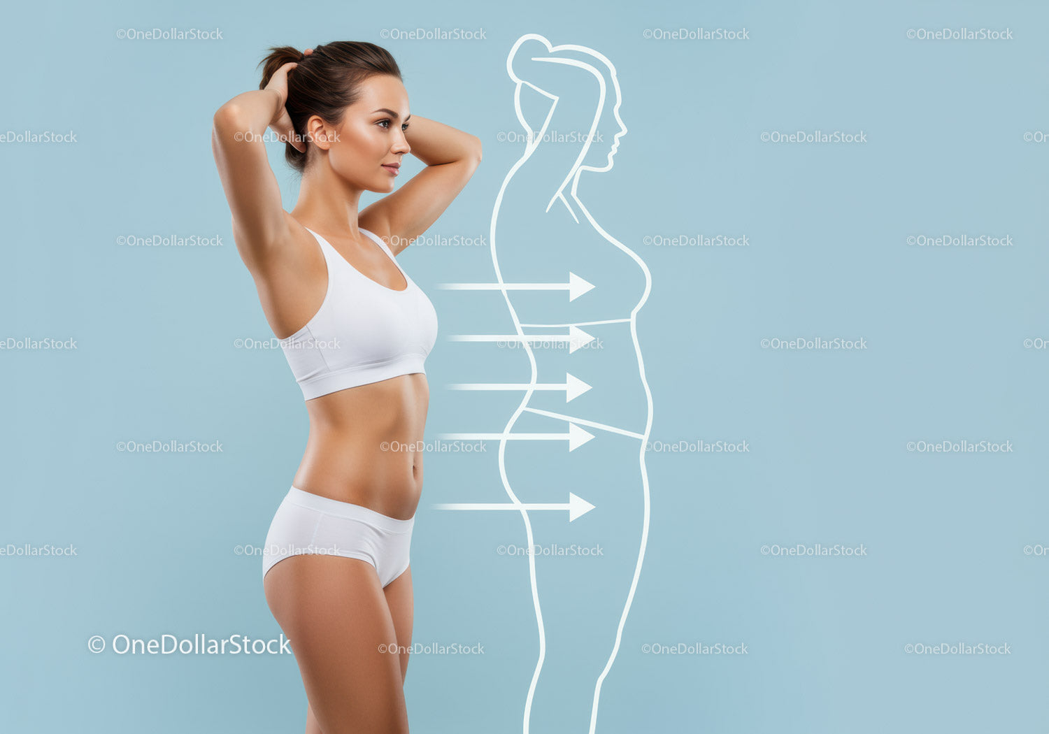 Sylwetka zdrowej, aktywnej kobiety podczas treningu z zarysem fitness