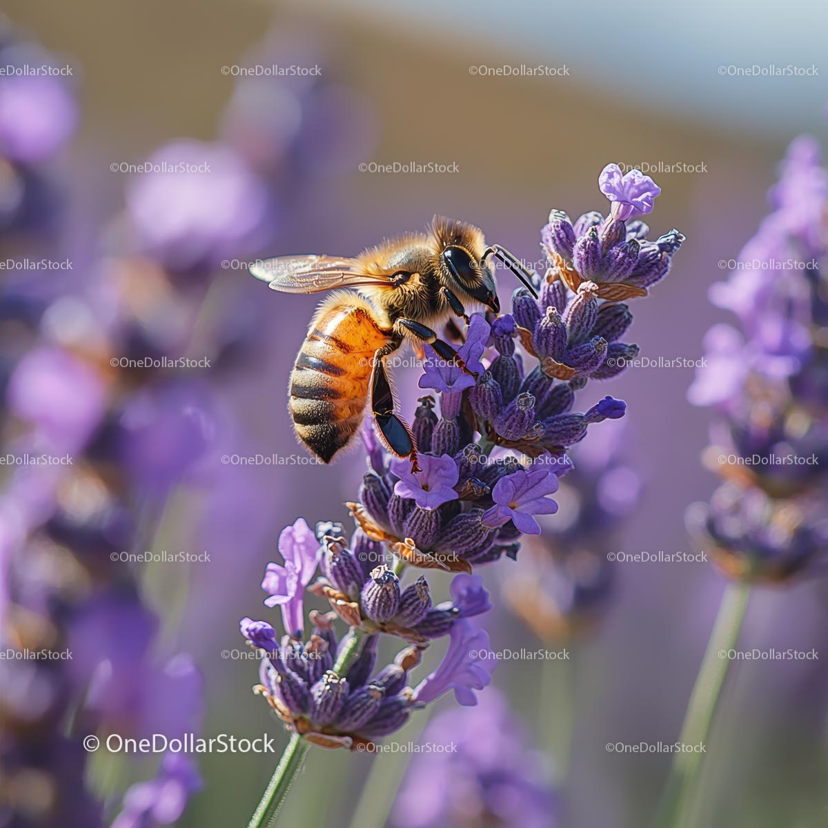 Pszczoły miodne zapylające kwiaty lawendy w żywym ogrodzie