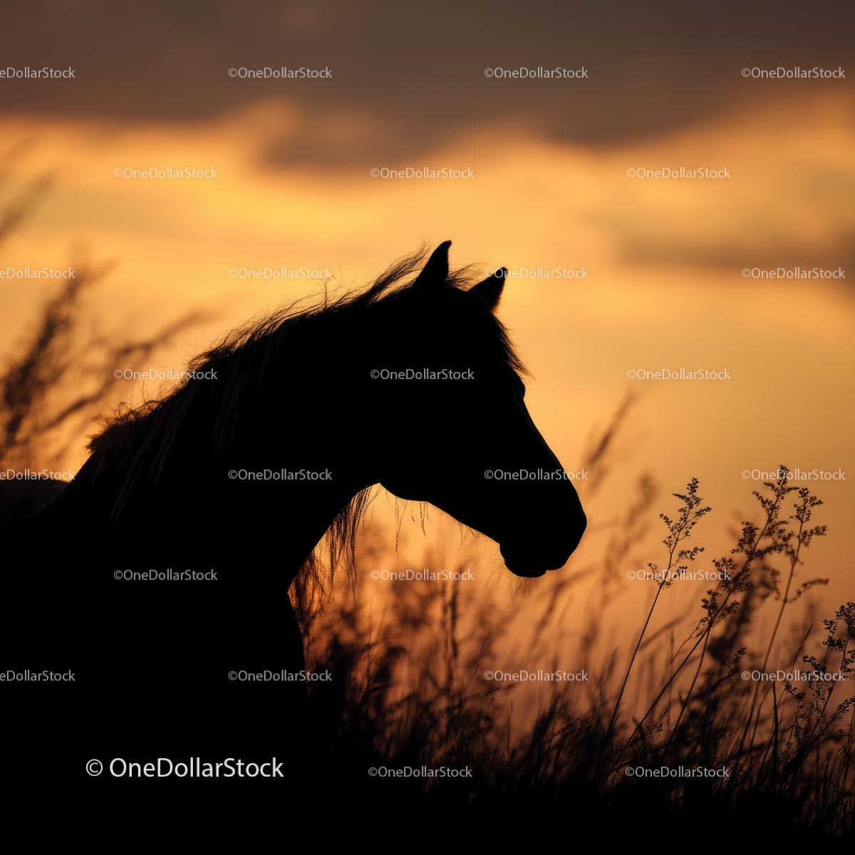 Sylwetka konia na tle żywego zachodu słońca