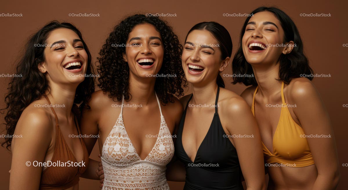 Radosna grupa przyjaciół śmiejących się razem w strojach kąpielowych