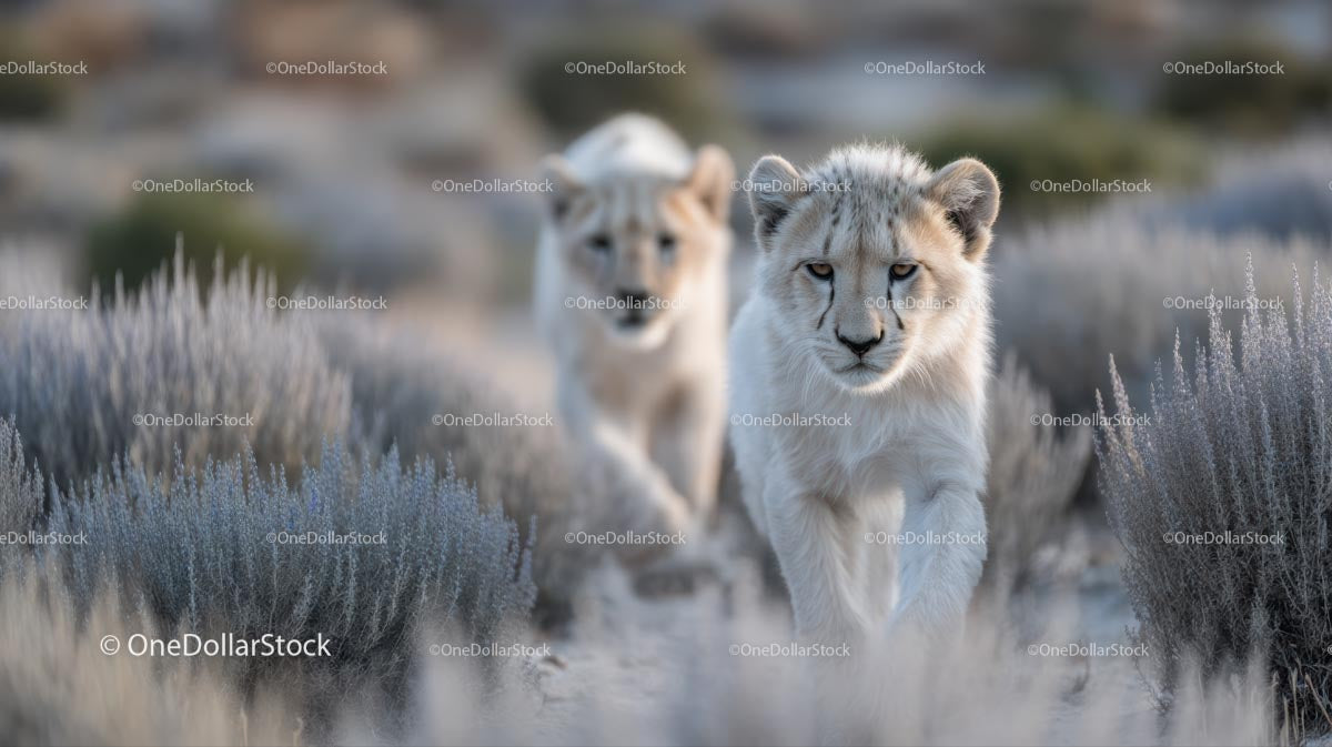 Młode lwy eksplorują dziką sawannę