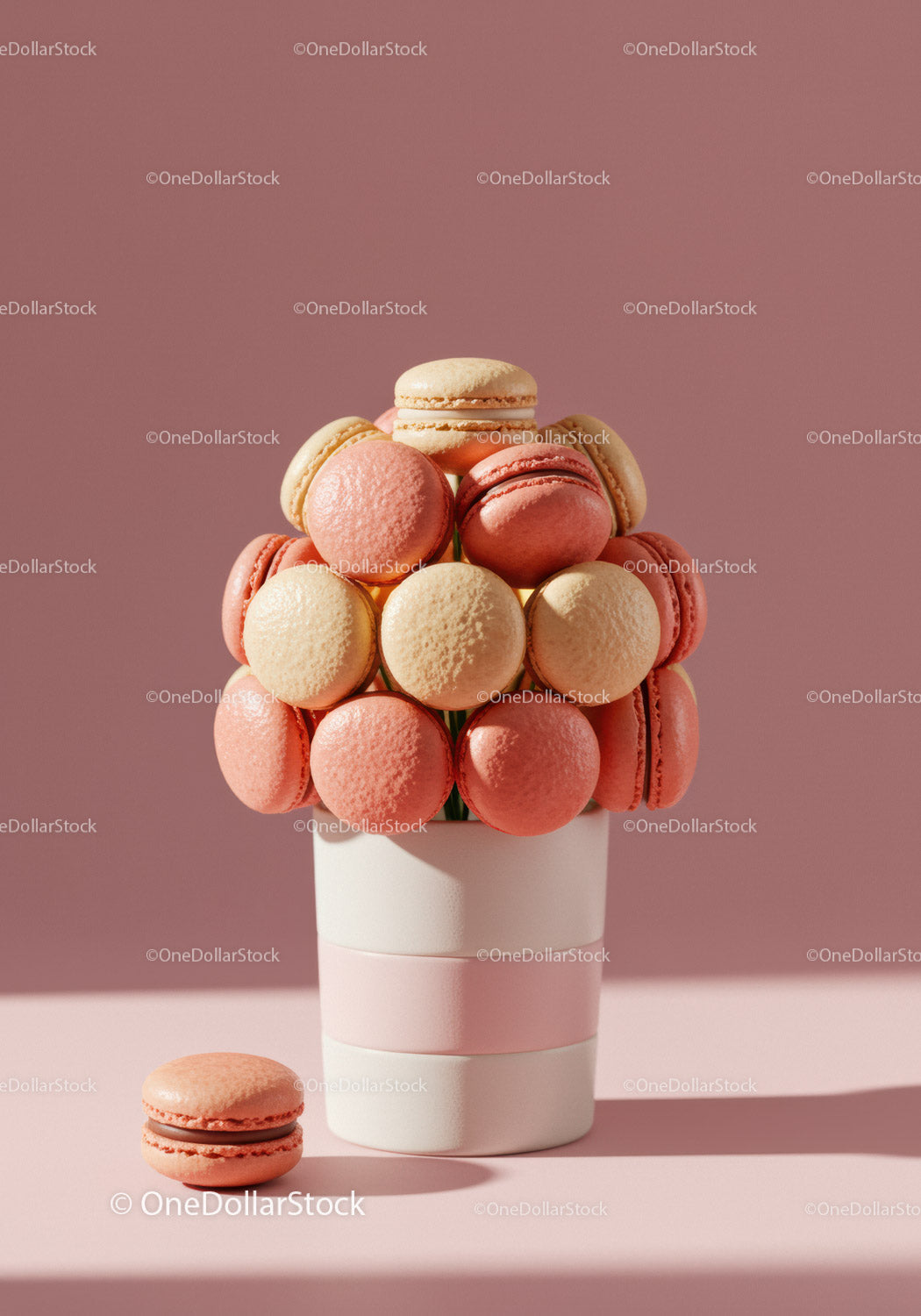 Bukiet makaroników w ceramicznym wazonie na pastelowym tle