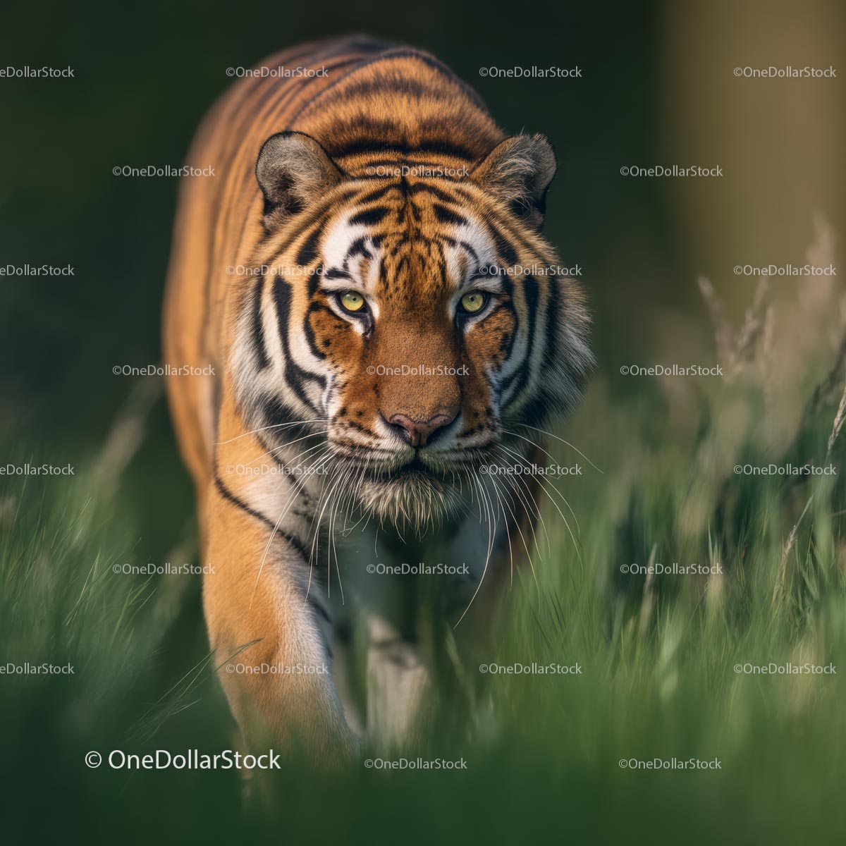 Majestatyczny tygrys bengalski przechadzający się po bujnej trawie