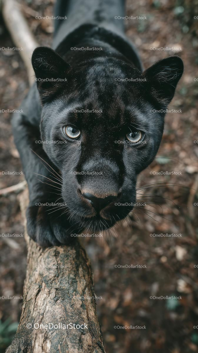 Majestatyczna Czarna Pantera odpoczywająca na pniu drzewa