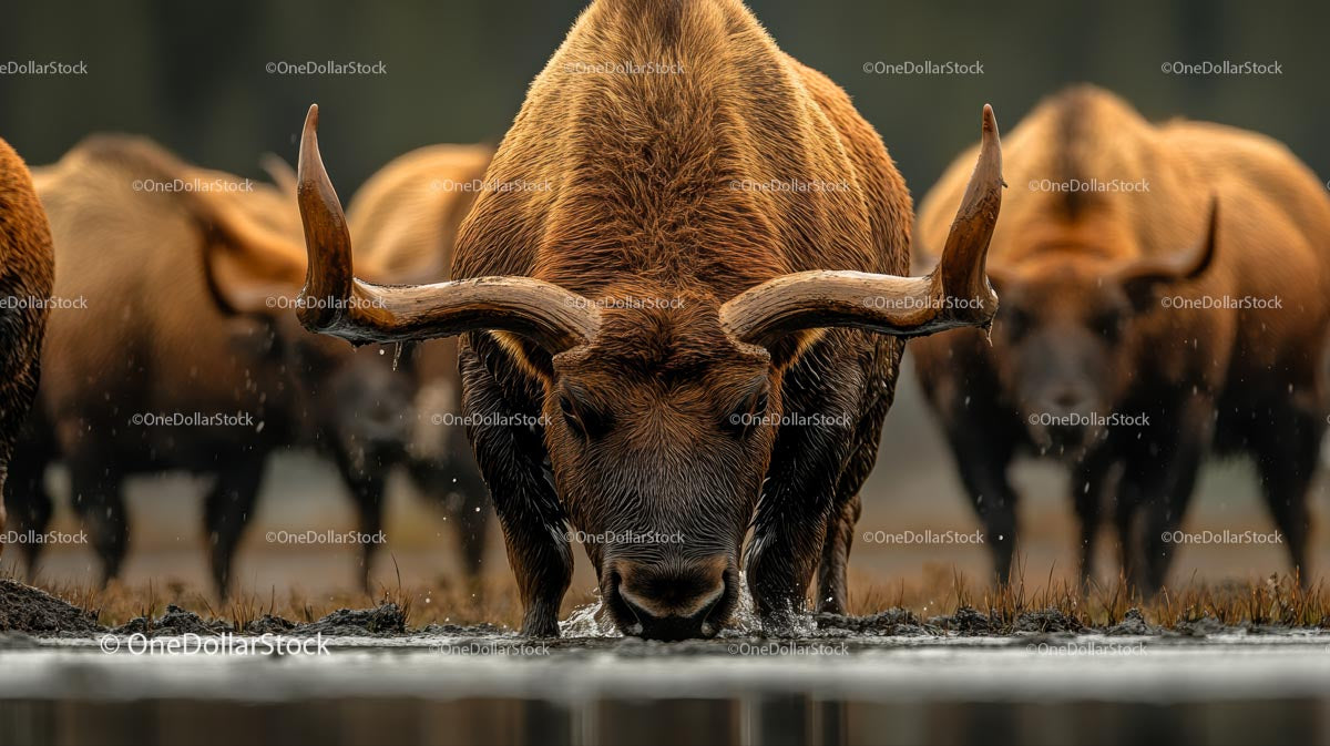Majestatyczny Byk z Imponującymi Rogami przy Water's Edge