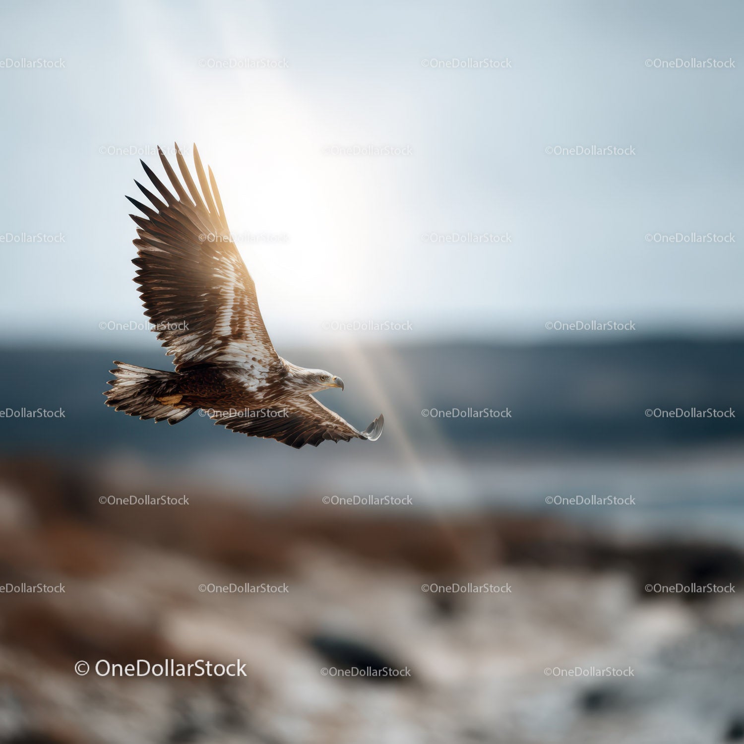 Majestatyczny orzeł szybujący po błękitnym niebie w naturalnym środowisku