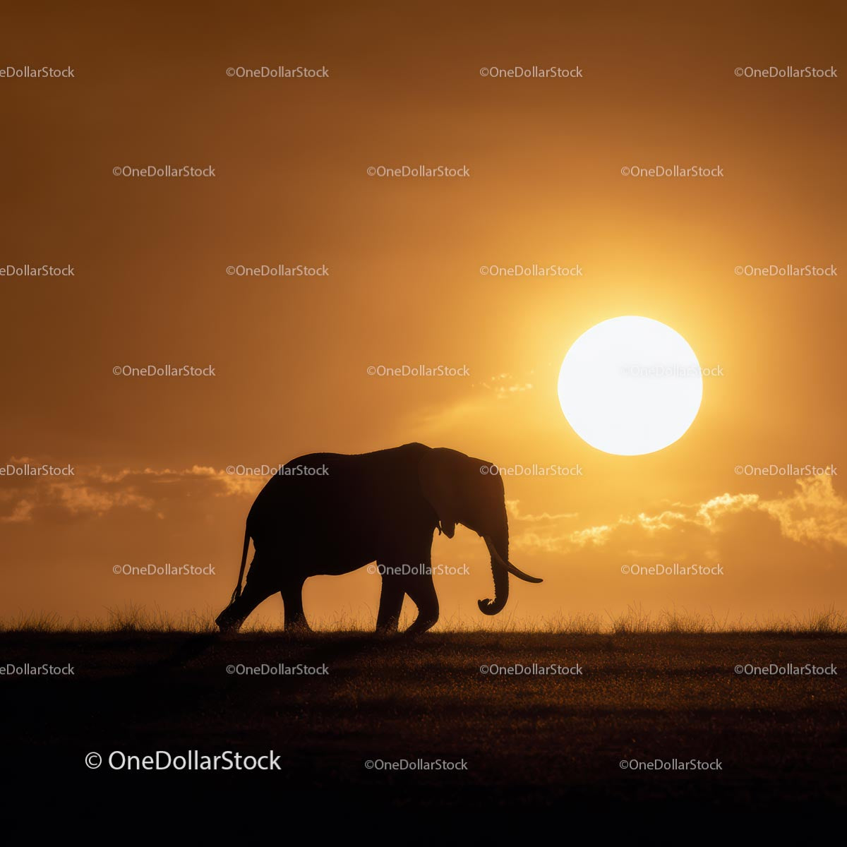 Majestatyczna sylwetka słonia na tle złotego zachodu słońca