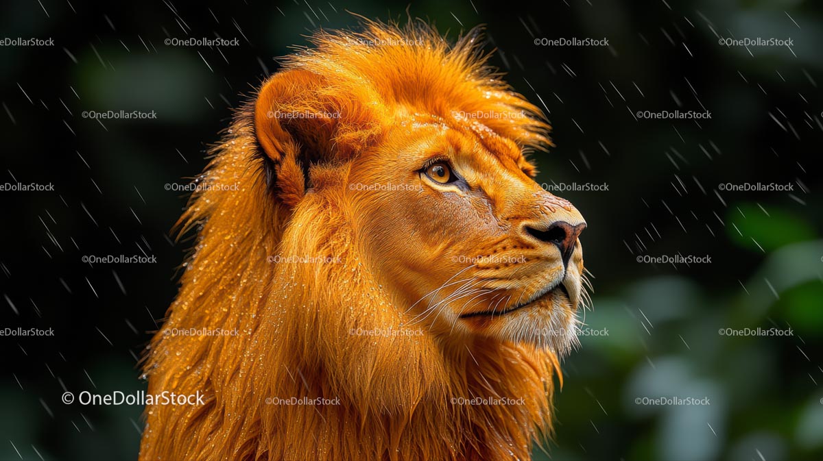 Majestatyczny lew w deszczowej dżungli