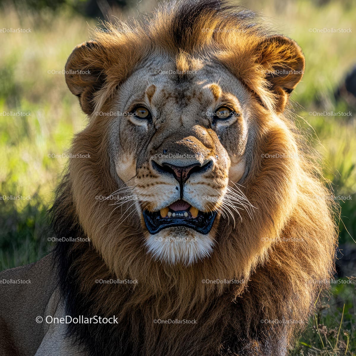 Majestatyczny lew ryczący na afrykańskich łąkach